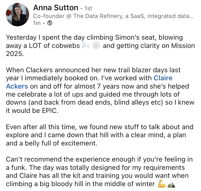 If this sounds amazing to you, let's hop on a call and discuss how a Trailblazer Day could help you.